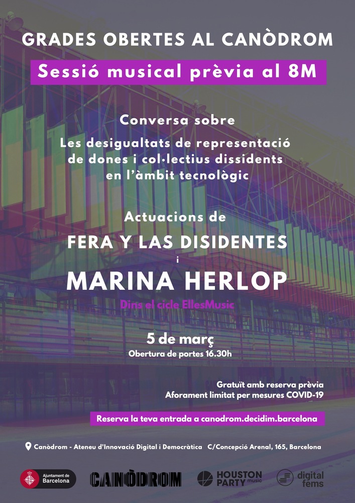 El 5 de març a les 16:30h les grades del Canòdrom tornen a obrir per acollir una sessió musical que visibilitza la bretxa de gènere en l’àmbit tecnològic.