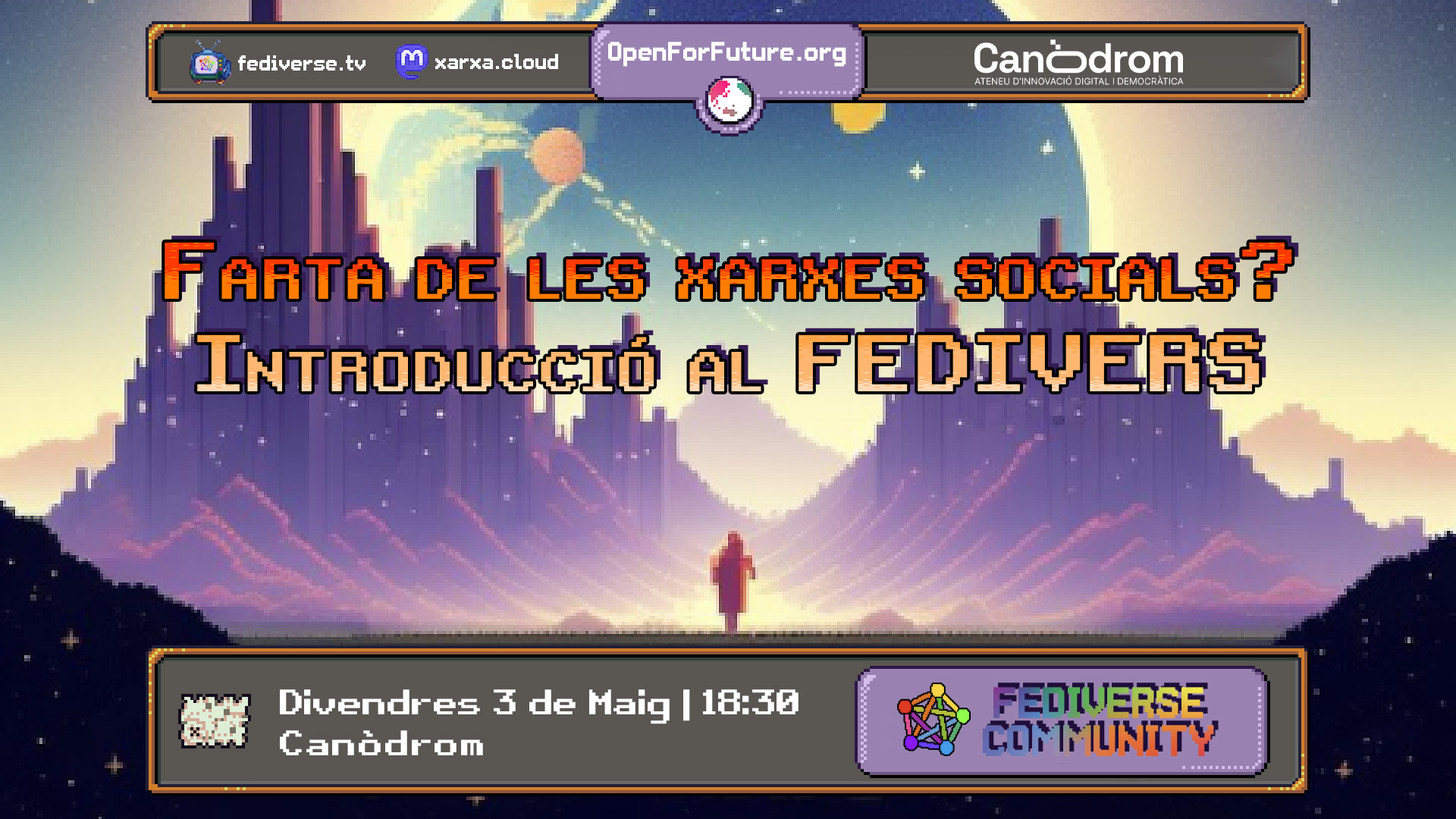 ¿Estás cansado/a/e de perder horas en las redes sociales sin darte cuenta? Muchas de las plataformas más utilizadas (Instagram, YouTube, TikTok...) están diseñadas para hackear tu cerebro y atraparte frente a la pantalla, lo hacen para mostrarte publicidad y ganar dinero: el producto eres tú y tu atención. Sin embargo, existe una alternativa de código libre y descentralizada llamada «Fedivers». En realidad son muchas plataformas diferentes, diseñadas y desarrolladas por personas que quieren herramientas realmente hechas para tejer redes sociales sin intenciones ocultas. En este encuentro presentaremos algunas de estas plataformas: Mastodon, Peertube, PixelFed, Mobilizon… y te ayudaremos a entenderlas un poco más.