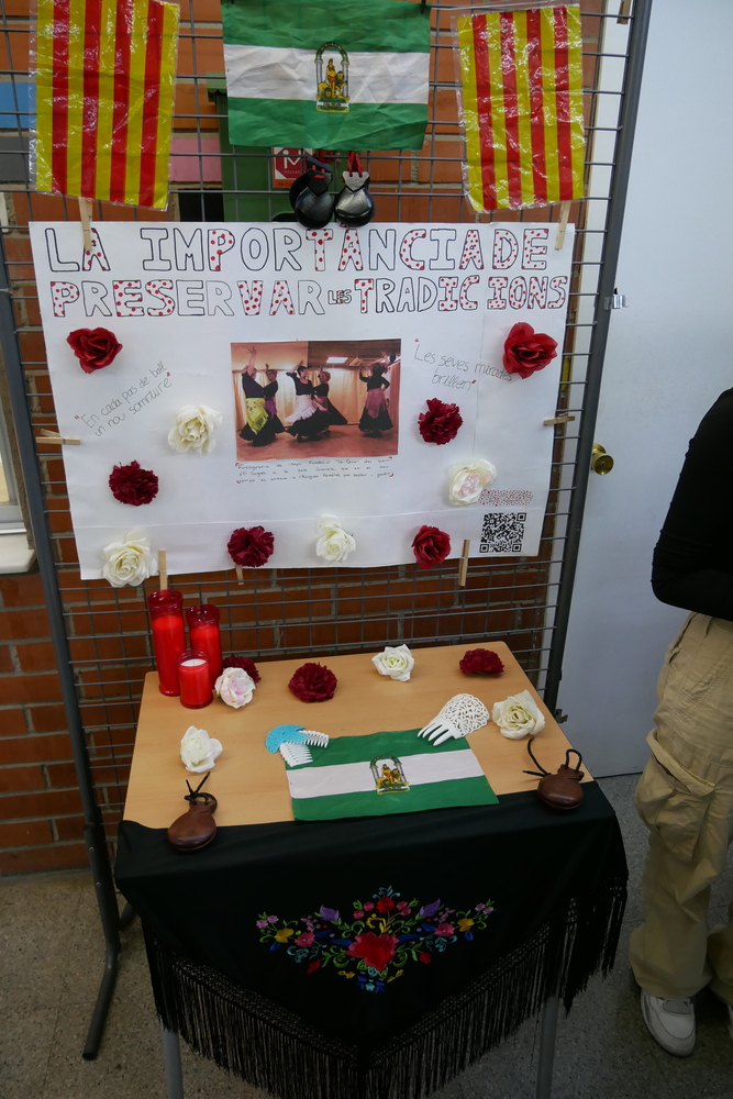 En l’exposició van parlar un grup de noies de 1r de batxillerat. Parlaven sobre la importància de preservar tradicions amb més de 170 anys d'història com ara les sevillanes. Visibilitzen també una integració de la cultura andalusa a Catalunya, posant d'exemple les dues banderes que van posar, Catalunya i Andalusia.