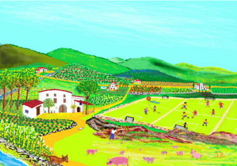 A principis del segle XX, on actualment hi ha la plaça Ferran Reyes, hi havia la masia de Can Jordi, a tocar del Torrent de la Guineu. Allà hi criaven porcs amb les deixalles que hi portava l’escombriaire. Els veieu al cromo?