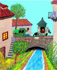 El pont es trobava al carrer Lope de Vega (actual carrer Biscaia ) junt al carrer Bofarull, sobre el Rec Comtal. Es va construir a causa de la visitade la filla d’Alfons XIII, Maria Cristina de Borbó i Battenberg (Comtessa de Marone-Cinzano), a la fabrica del CINZANO en 1947, on a més de construir el pont es va empedrar el carrer Lope de Vega. Al cromo es veu el quiosc i el carro de les escombraries.