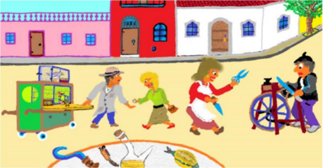 Us vull presentar personatges pel record, els quals es situen a principis del segle XX. En aquest cromo veureu a l’Esmolet i a l’Home dels Ocells. Aquest últim es guanyava la vida amb el seu espectacle amb els ocells i a més esbrinava el futur de la gent. Per una pesseta, un ocell treia una cartolina d’una caixeta i en ella venia escrit el futur del client.
