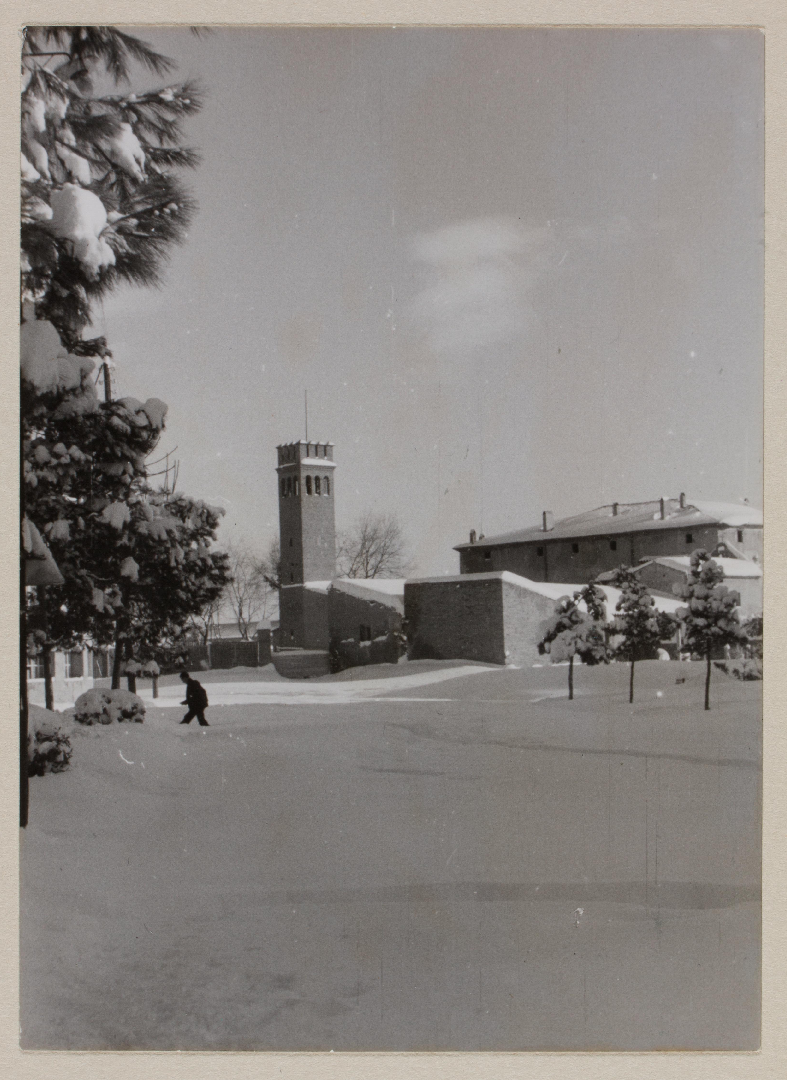 It is the famous snowfall of 1962. The image is identified as Can Ros, at Pardo street with Cardenal Tedeschini. The photograph is taken from La Vid street, now called Cepa street.