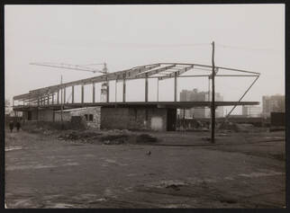 En aquesta fotografia apreciem la construcció del Canòdrom, l’any 1963. Aquest mateix any va caure una gran nevada al Nadal que va dur com a regal el Canòdrom al barri.