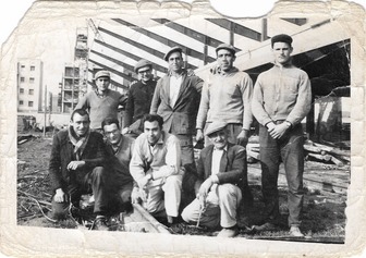 El meu pare i els seus companys durant la construcció del Canòdrom. Es deia Francisco Martínez Perges i era originari de Carboneros (Jaén). És el quart dels que es troben en peu, contant des de l'esquerra.