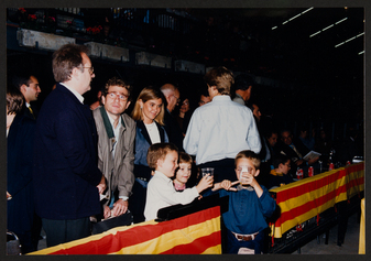 Els/les participants de la documentació col·lectiva comenten que els nens que apareixen a la fotografia s'estan divertint molt. Sembla que imitin la vida dels adults al beure com ells. Recorden que hi havia una beguda per a nens anomenada Kina Sant Clement. Per la ubicació de la taula, pensen que és un esdeveniment no relacionat amb les carreres de llebrers. Destaquen la col·locació de la bandera catalana i comenten que és una fotografia més recent perquè durant la dictadura no podia posar-se la bandera catalana així.