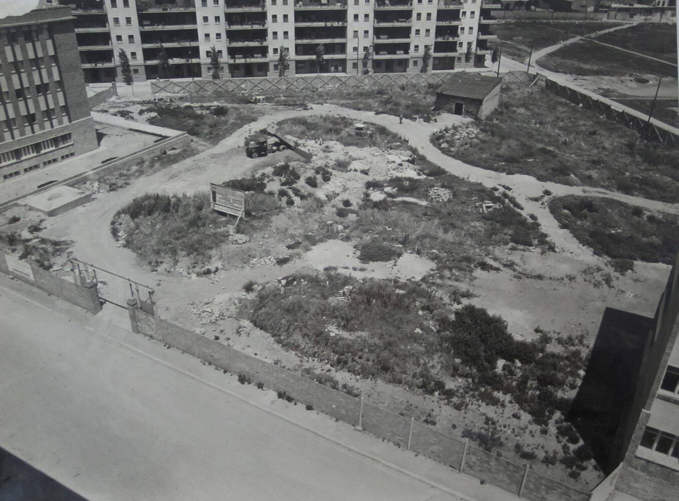 Durant la sessió es va comentar que la parròquia, inaugurada el 1963, va ser dels últims elements del projecte d’urbanització del Congrés, elaborat pels arquitectes Josep Soteras Mauri, Antoni Pineda i Carles Marquès, que es va construir. La fotografia mostra un solar envoltat d'habitatges on posteriorment va construir-s'hi la parròquia Sant Pius X. La participant d'edat més avançada va comentar que «va ser un gran canvi mudar-se del barri del Born al nou barri del Congrés, ja que estava molt més ventilat i era més higiènic. Al Born hi havia pisos on es compartien latrines entre pisos de la mateixa planta i aquí cada pis tenia el seu propi bany...». Malgrat les innovacions en la construcció dels edificis del Congrés on «arribava llum natural a totes les habitacions», els/les participants també van destacar que es va voler estalviar en els materials de construcció i les parets «eren i encara són de paper».